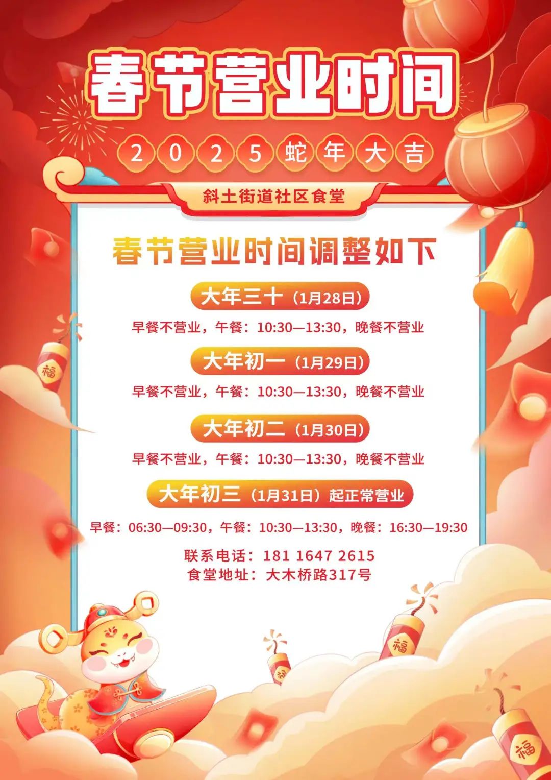 附各社区食堂春节营业时间: