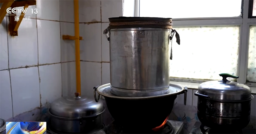 需要注意的是,锅与锅之间的缝隙要用布缠紧密封,以免影响奶酒的品质。酿制传统奶酒,采用的是蒸馏法。最下层的锅中烧开的酸奶,蒸气上升遇冷凝结,滴入中间的小锅,就是风味独特的奶酒。
