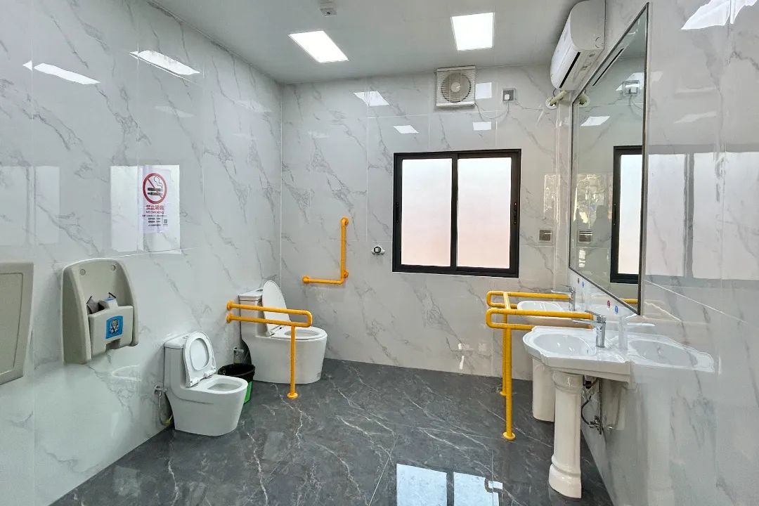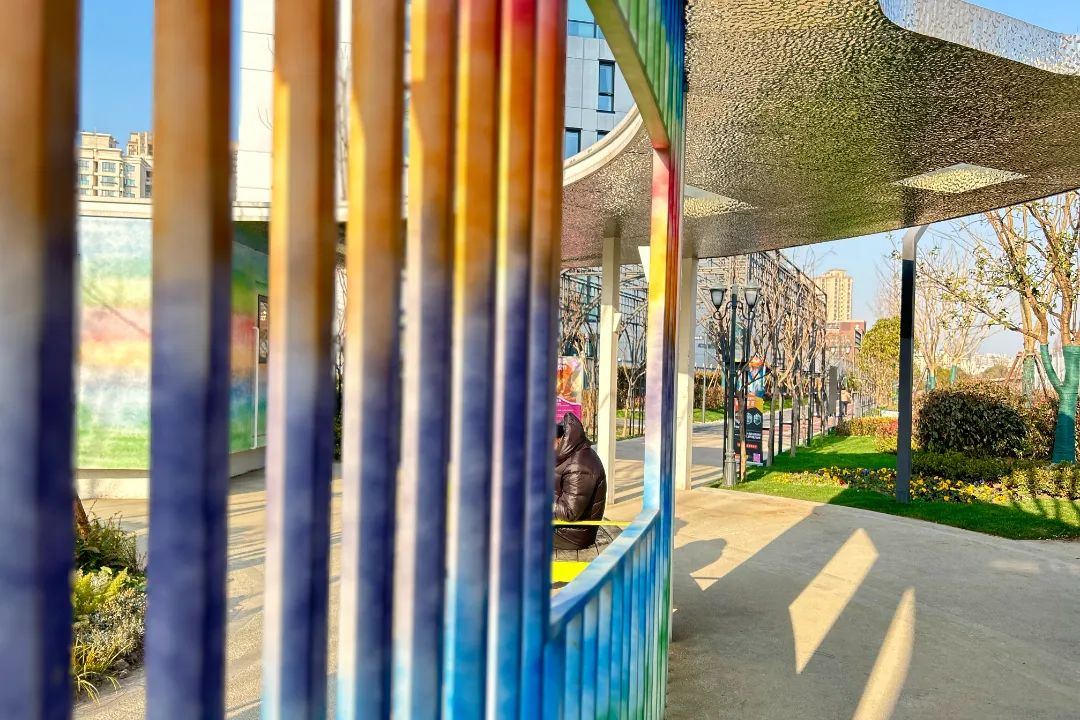 在三门路入口处,一座红砖外墙的“彩虹驿站”格外引人注目。驿站内设有休息室、公共厕所等服务设施,并配备了智慧公厕系统和完善的适老适幼化设施。