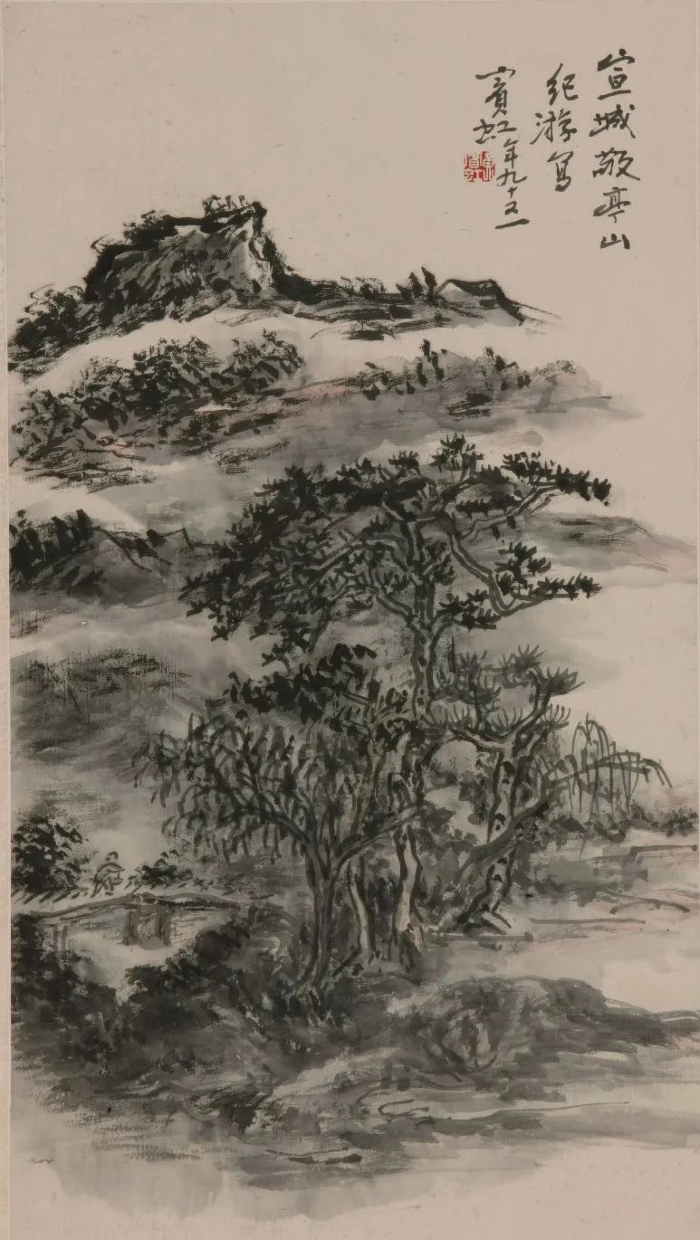 李白的一句“相看两不厌,只有敬亭山”让敬亭山名扬天下,黄宾虹也跟随李白脚步来到敬亭山。敬亭山位于安徽宣城,属黄山支脉,主峰海拔317米。历代吟颂敬亭山的诗、文、画数以千计,敬亭山因此也被称为“江南诗山”。