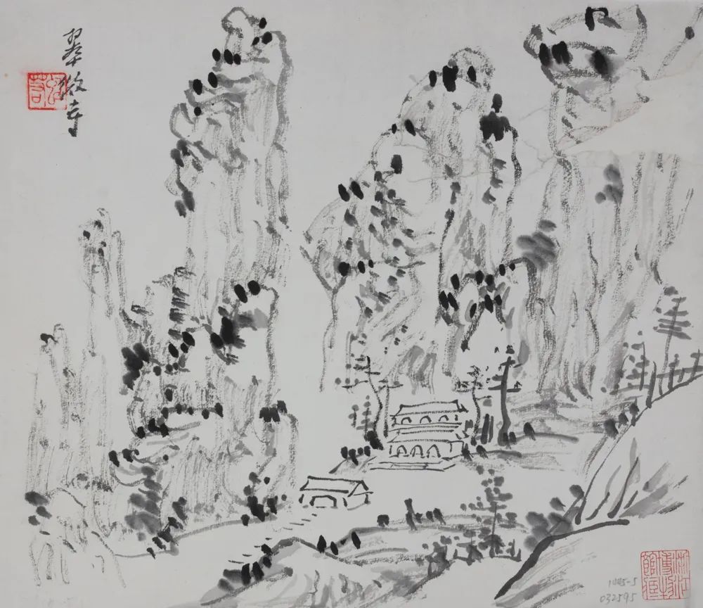 青城山位于四川省都江堰市。一曲《青城山下白素贞》让青城山广为人知,几十年前的黄宾虹已经替我们踩过点,边听琴边挥毫,写下这幅清雅之作,并为蜀地山水写下诗句“青城坐雨乾坤大,入蜀方知画意浓。”
