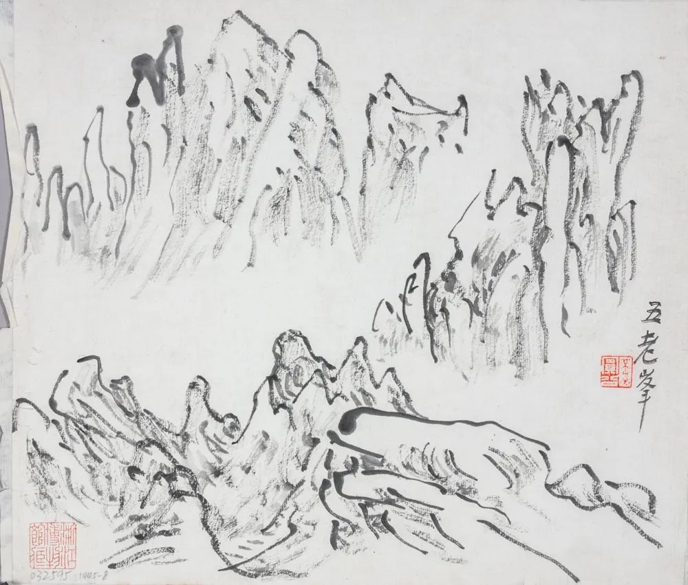 《黄山写生画稿》题款四:光明顶。钤印:虹若(朱文)鉴藏印:浙江博物馆藏(朱文)