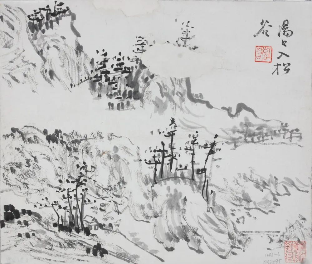 《黄山写生画稿》题款一:汤口入松谷。钤印:虹若(朱文)鉴藏印:浙江博物馆藏(朱文)