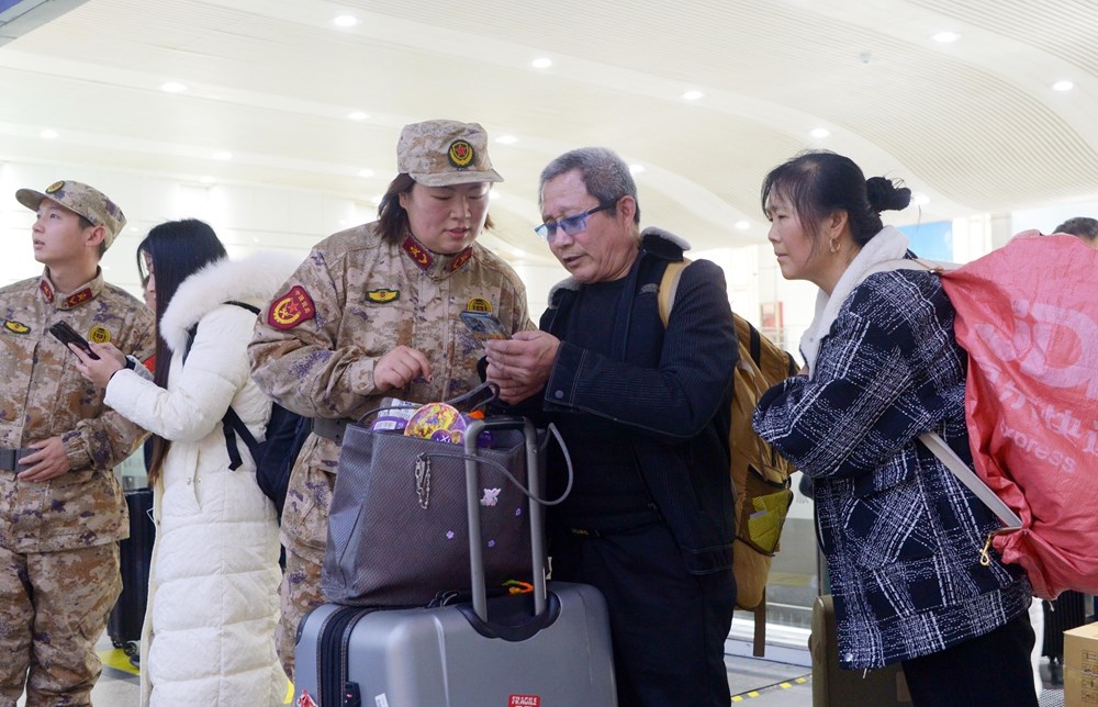 民兵分队分别到火车站南广场、进站口、安检通道、电梯口、候车大厅、检票口、列车站台等人流密集点位,维护旅客群众出行安全,保驾护航。