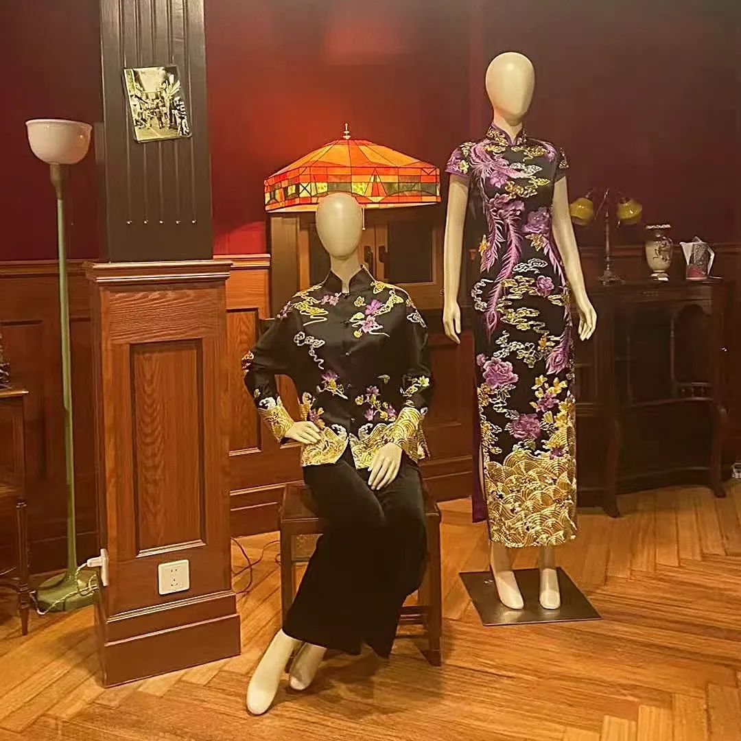 走进“乍浦锦里”,底层南侧的咖啡馆弥漫着浓郁的咖啡香气。二楼被巧妙布置为展示厅,宽敞的空间里,艺术品、古董家具、老物件以及各种款式的蔓楼兰旗袍琳琅满目,让人目不暇接。