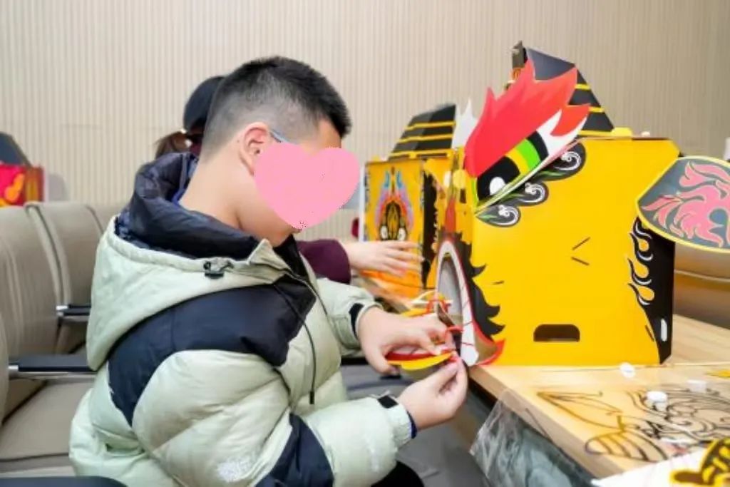 阅读互动游戏区也别具特色。以《小舞狮》为主题的绘本共读活动,让孩子们沉浸在精彩的故事中,感受传统文化的魅力。DIY醒狮头活动,充分发挥了孩子们的创造力和动手能力,他们用彩纸、画笔等材料,制作出一个个独具创意的醒狮头。大家还一起跳起“醒狮操”,活力四射的舞蹈将活动氛围推向高潮。
