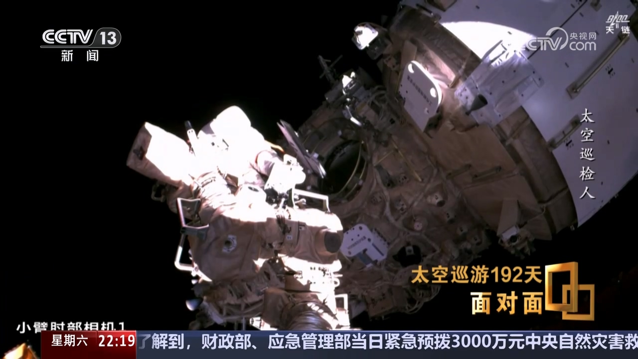 随后,航天员李广苏顺利出舱,他需要沿舱壁自主攀爬,对舱外设备设施进行巡检。