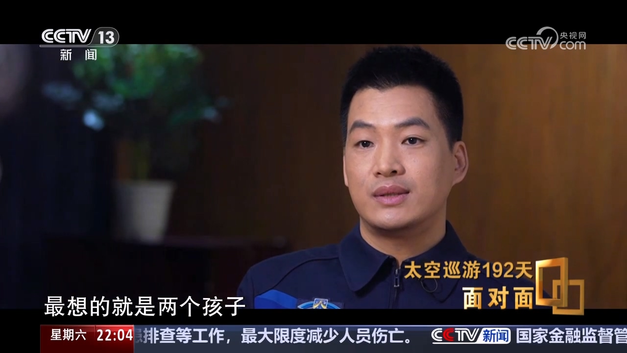 李广苏:两个孩子。虽然说每周都能跟家里人进行一次视频沟通,但是从视频里边看小孩,他成长看不太出来,我家属就跟我说小孩又长高了,又长胖了,在天上特别期待,特别期待能够回来抱一抱他们。