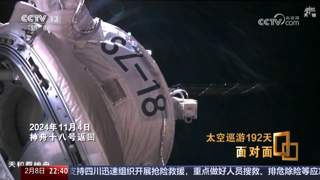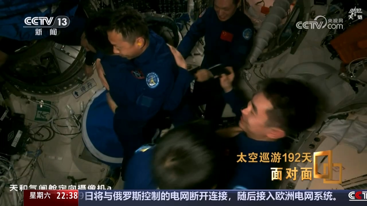 李广苏:告别仪式结束的时候,我是第一个离开空间站去神舟十八号飞船的,当时整个人从飘着,离开核心舱,到了节点舱以后,我往两边一看,再看一看两个实验舱,再回头看一看自己工作生活了192天的空间站,心里边会有一种莫名的酸楚,有一种想哭的冲动,忍着泪水没敢看第二眼。