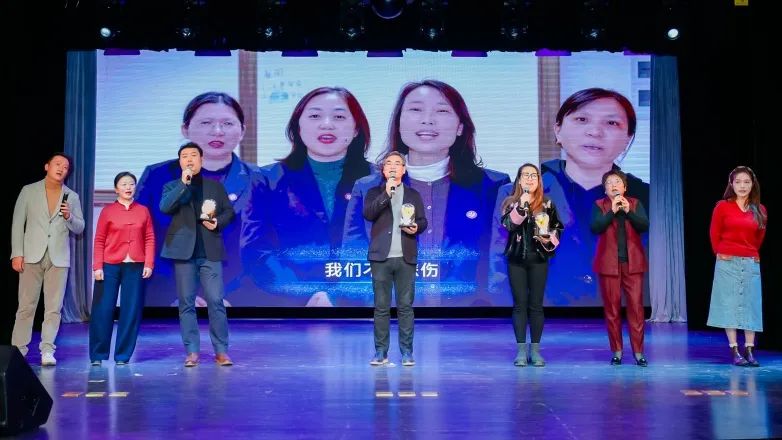 最后,区知新荟会长班子、5个专委会进行了才艺表演,带来了快板串场、歌曲演唱、配音秀、朗诵、合唱、茶艺展示、人机共舞等精彩节目。年会在会长班子领唱、全场合唱的歌曲《同心宁行》中圆满结束。