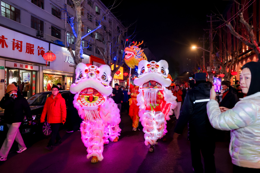 伴随着热闹的“点睛”仪式,第二届川沙新镇元宵灯会正式拉开帷幕。“龙狮”在舞者们的舞动下,引得现场观众阵阵欢呼。据了解,今年川沙新镇元宵灯会融入了“沉浸式老街集市”“共竞灯谜·妙趣横生”“庆元宵文艺演出”等活动形式,进一步助推文化体验稳步提升、文化服务扩容提质。