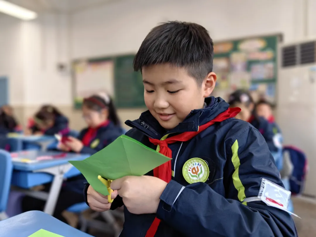 钟老师还鼓励同学们动手尝试,体验剪纸的乐趣,“创新的图案与纹样是剪纸艺术的灵魂,只有掌握了扎实的技法,才能随心所欲地表达内心的期盼与祝福。”学生们在钟老师的指导下,纷纷拿起剪刀,一张张红纸在他们的手中渐渐变成了形态各异的作品,有的剪出了寓意健康的莲花,有的则是象征智慧的松树,每一件作品都凝聚着孩子们对传统文化的热爱与传承的决心。