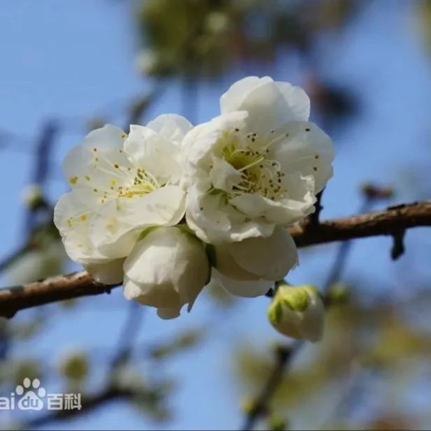 蔷薇科杏属植物。龙游梅枝干自然扭曲,树冠散曲自然,宛若游龙。真梅系龙游梅类的梅花,开白色重瓣花,为梅中珍品,品种甚少,只有一个品种为玉蝶龙游梅。花期在1月中旬至3月上旬。