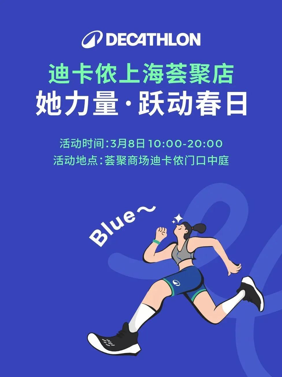3月8日上午10:30,上海荟聚迪卡侬门店将变身欢乐运动场,新泾镇将联合上海荟聚、迪卡侬,为女性朋友及亲子家庭准备一场“她力量·跃动春日”社区女性趣味运动会。