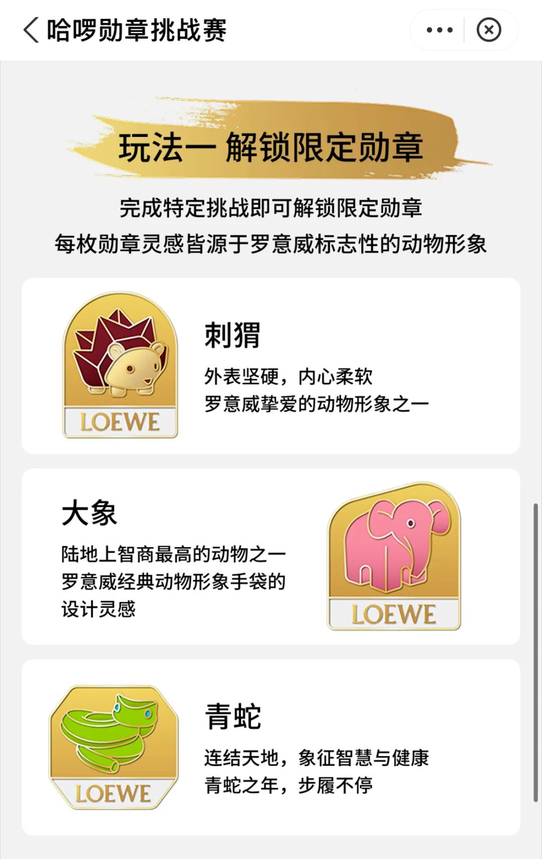 在享受骑行乐趣的同时,还可参与“金色骑旅挑战赛”,累计骑行满3公里,即有机会获得罗意威限定勋章。这次,LOEWE将标志性动物形象融入勋章设计,包括外表坚强内心柔软的刺猬、陆地上高智商的动物大象、象征智慧与健康的青蛇等。