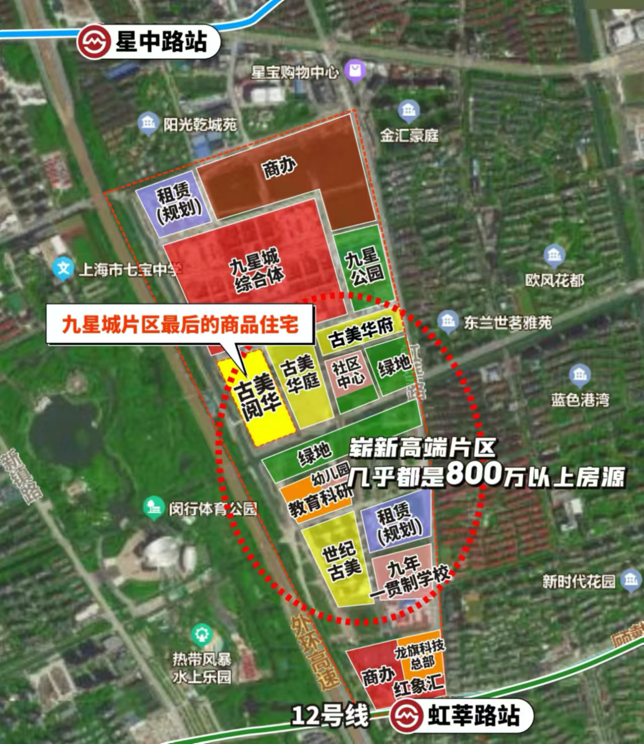 2024年3月,央企中铁置业和国企华发股份击败10家房企摇号竞得,联袂打造“古美阅华”,大概率是古美板块最后一块住宅用地(信息来源:土地控详规划)