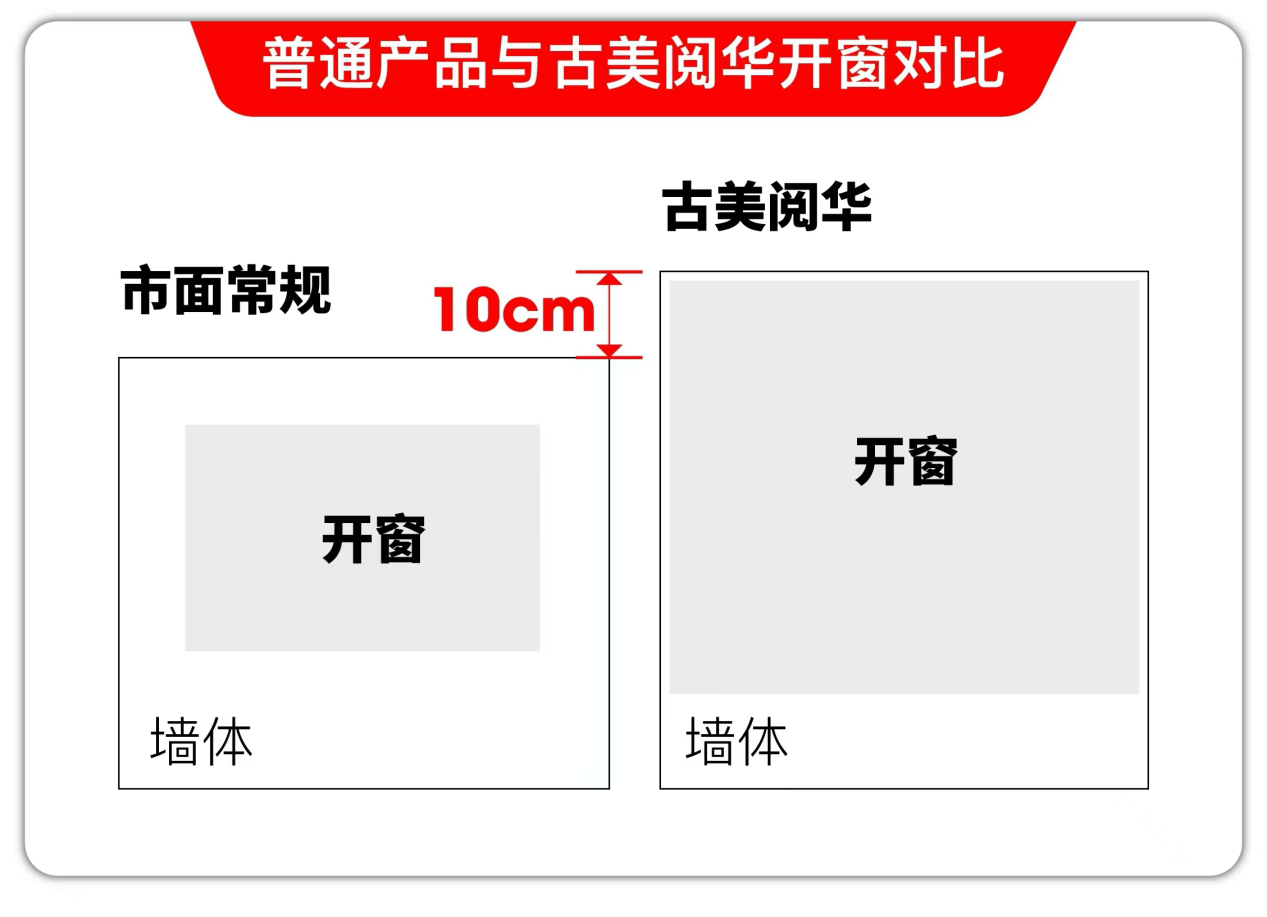 古美阅华窗墙比更高,项目每一扇窗的高度接近天花板,而且是不封阳台和全屋飘窗的设计,相对于同面积段户型有着更多的采光空间。