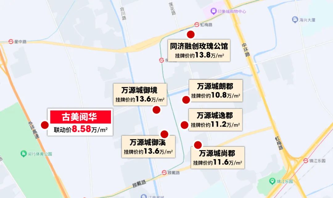 而且价格与周边次新房对比,最高价目前售价约13.8万/平,相当于购买古美阅华5.0住区产品,差价高达5万元/㎡!如此高性价比,堪比当前大热的徐汇滨江,即便与周边房龄已有约10年大盘相比,差价也达约4万/平,所以,古美阅华从各维度看都是900万级置业的上佳选择,必争之地!(房价数据来源于:上海链家网搜索)