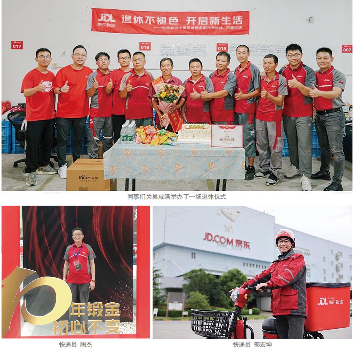 2007年京东自建物流体系,并与一线员工签订劳动合同并缴纳五险一金,这也使得这批小哥成为了首批缴纳社保的快递员。数据统计,17年来,已超过1000名在京东物流工作至法定退休年龄的一线员工已步入退休生活,这些员工分布在不同岗位,如快递员、分拣员、司机及防损员等。这其中,不乏部分小哥在上海退休,风雨17载,他们过上了“有保障的退休生活”。