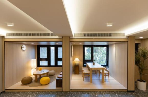 针对不同租住需求,打造48平方米、50平方米、72平方米、93平方米以及101平方米6种户型供租户选择。原木设计风格,清新典雅又不失家的温暖。公寓配备干湿分离卫生间、独立厨房和多功能客厅,卧室采用低重心设计,配备多档灯光调节和多功能桌,满足办公与生活需求。客厅根据户型配置硬质或软质沙发,客餐厨一体设计增强采光与通风,强调空间互动与收纳。