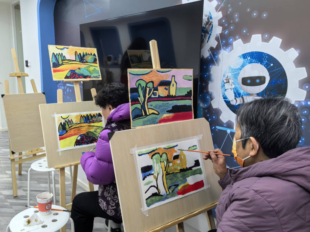 在“天龙生活盒子”5楼,记者看到,十几位居民端坐在画架前,跟着志愿者老师学习水彩画。学员和老师都头发花白,但在一描一画之间,还是能感受艺术所带来的愉悦人心的力量。