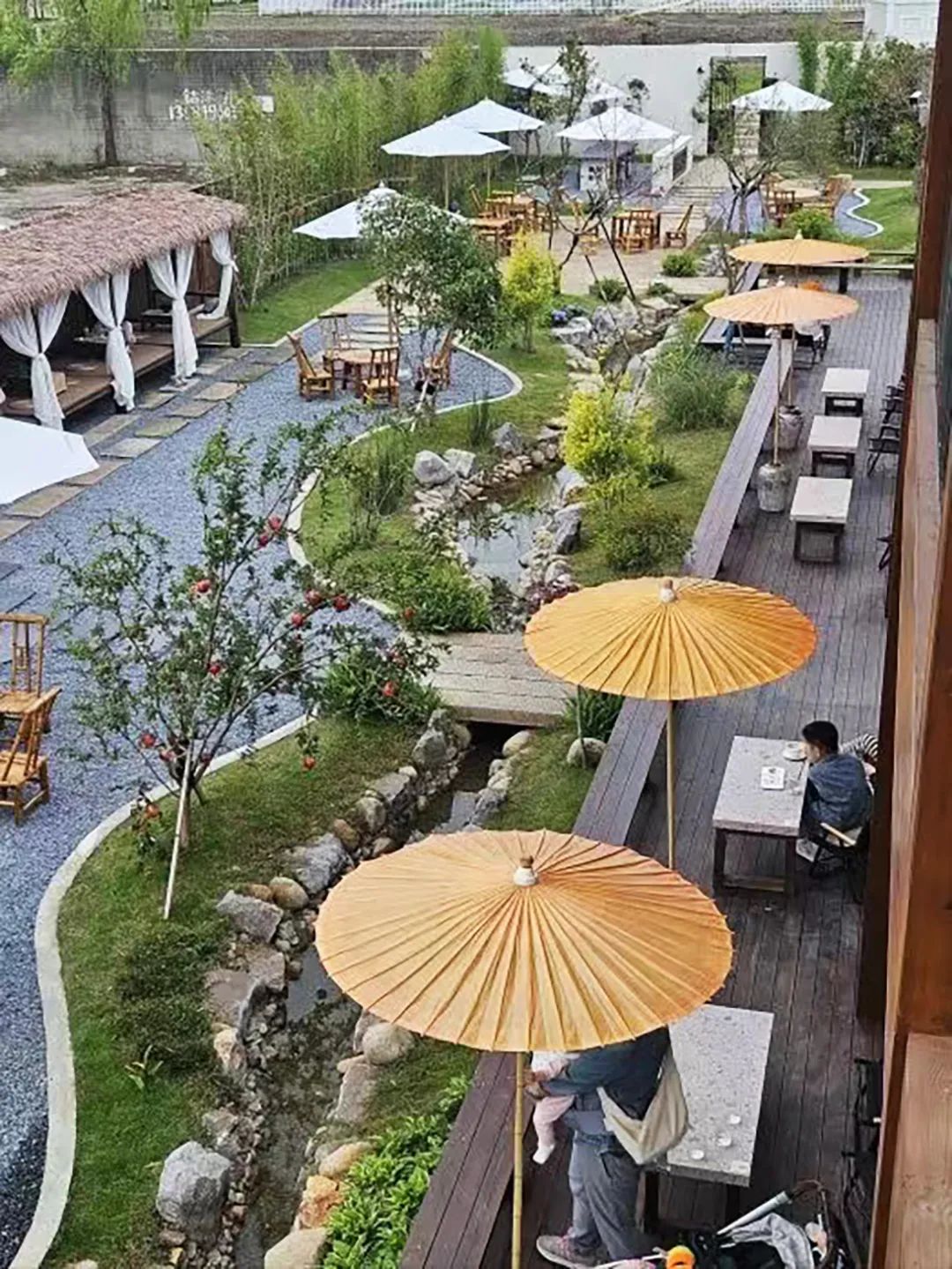 简介:云野花庐位于沈杨村,是一家充满松弛感的院子餐吧,日咖夜酒,中西美食,打造一方小院,慢尝人间烟火,构建“结庐在人境,而无车马喧;问君何能尔,心远地自偏”的“中隐之地”;这里音乐轻扬,小桥流水,竹桌纸伞,石板沙砾,侘寂古朴,一隅清安;不管你喜欢融身于热闹人群,还是喜欢坐在安静角落,都能找到属于自己的快乐。