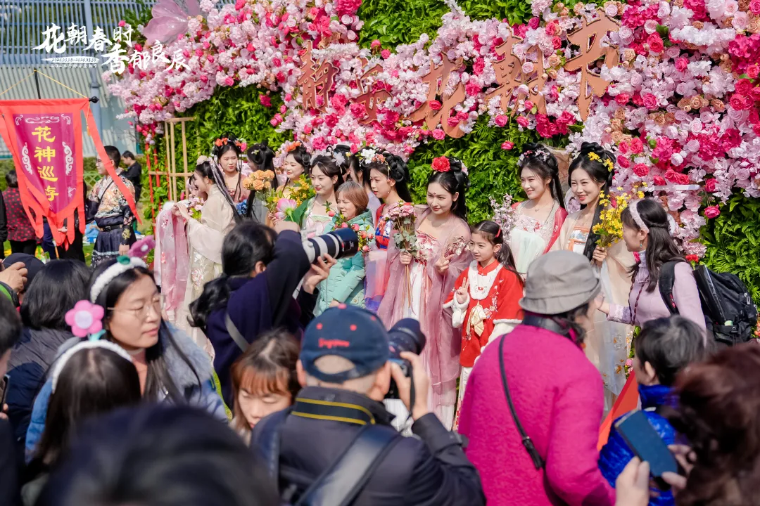此外,还首次引入华服换装及妆造摄影等互动体验项目,游客可挑选汉服唐装等传统服饰,化身雅士佳人,与十二位身着华美服饰的“花神”一同徜徉于芬芳馥郁的花道,感受古人寄情山水的极致浪漫和风雅情怀。