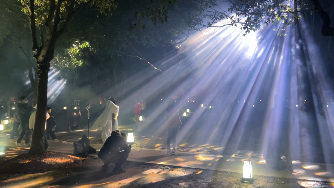 “顾村公园的夜樱专场给年轻人们的夜生活增加了一个游玩景点,很浪漫,很出片。”