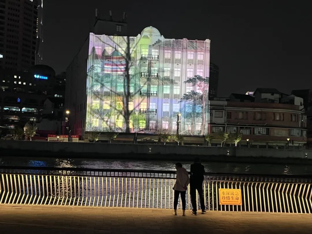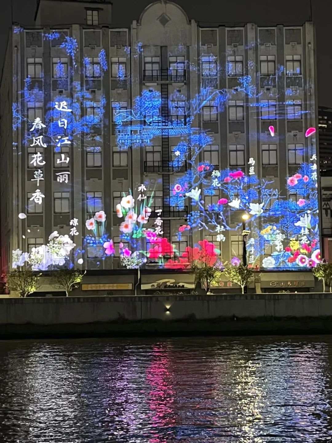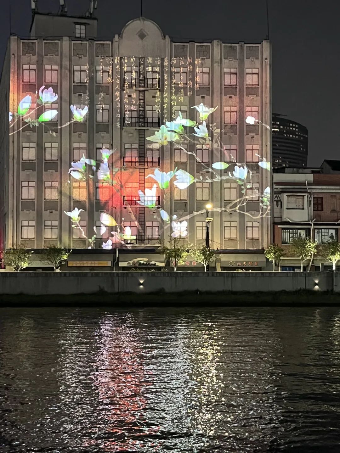 “白玉兰在水里‘开花’了,好美!”当青年艺术家们共创的光影秀《静看花开》点亮建筑外立面时,上海市花白玉兰化作光点飘落河面,引发现场观众阵阵惊叹。