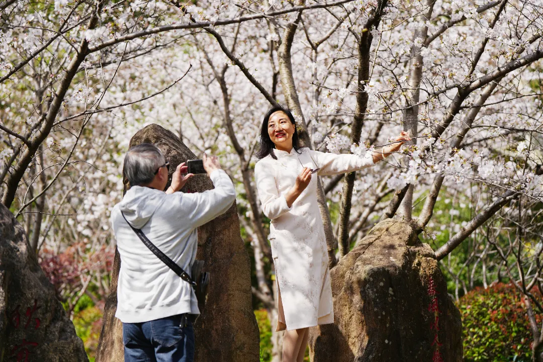 “长风公园是老牌的赏樱地了,每年必须来打卡。其次,长风公园的樱花很美,搭配成片绿荫看上去特别舒服。”一位王大爷举起手机拍摄时,兴奋地说道。另一位摄影师也陶醉其中:“长风公园樱花种植布局错落有致层层叠叠,无论是拍摄全景还是特写,都能拍出令人满意的照片。”
