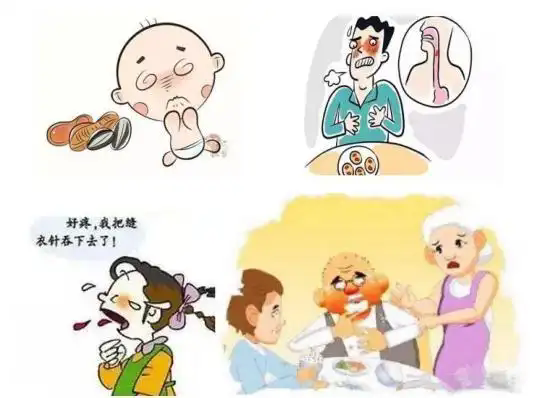 饮食不当:进食时说话、大笑、匆忙吞咽或未充分咀嚼食物等行为。尤其是在食用坚果类如花生、核桃,硬糖或果冻,带骨肉块等。