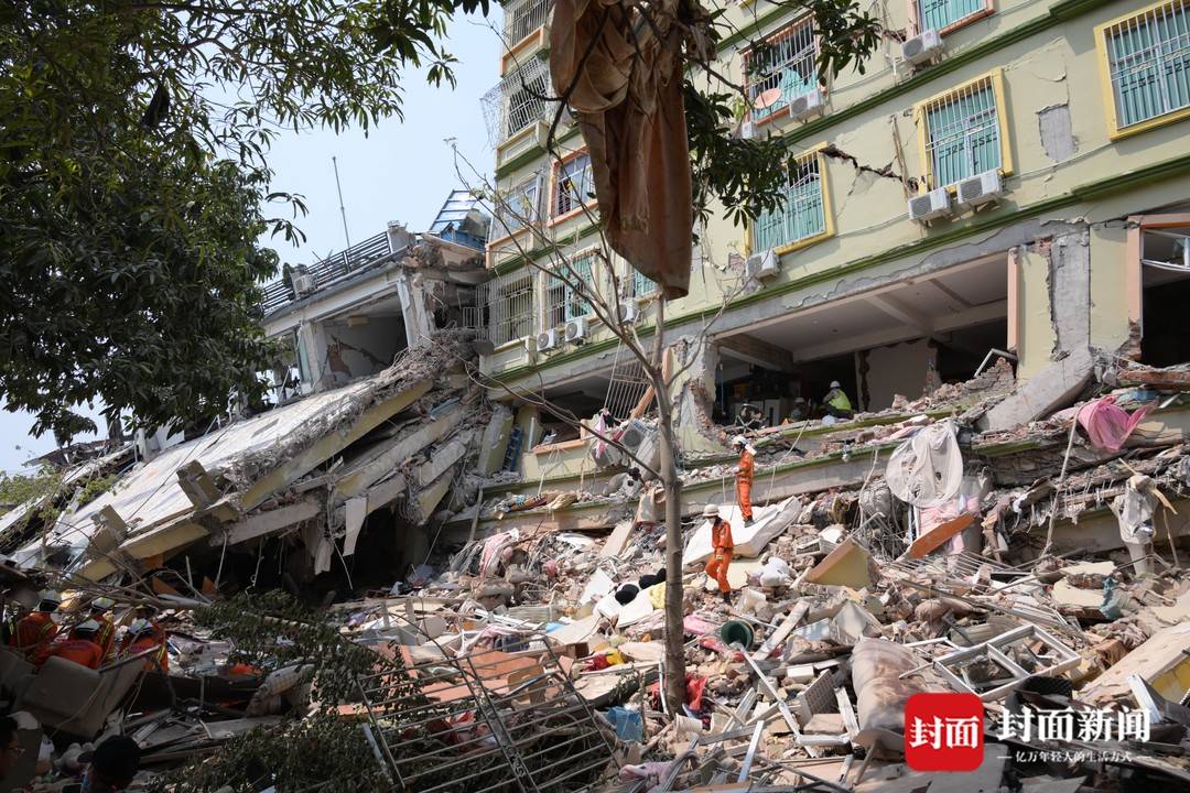 “这片公寓住有华人、美国和缅甸本地居民,有很多都是做玉石生意的。”在倒塌的废墟前,穿着一身睡衣、拖鞋,手臂上满是擦伤,薇薇惊魂未定,她告诉封面新闻记者,3月28日地震来临时,她正坐在房间里的床边休息,“第一波地震来的时候,楼房就倒了,我就在床边趴着,正准备从房间出来,第二波地震又来了,把房间压得更扁了。”