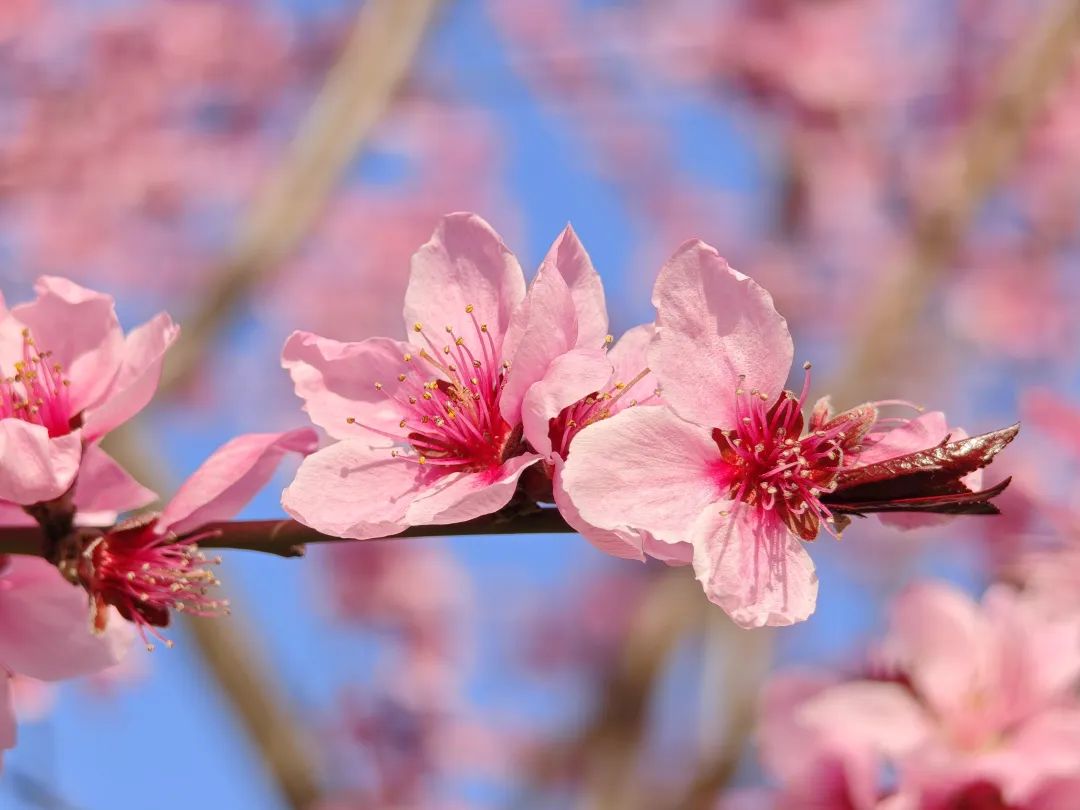“去年桃花和樱花撞期,今年终于能错峰打卡了!”