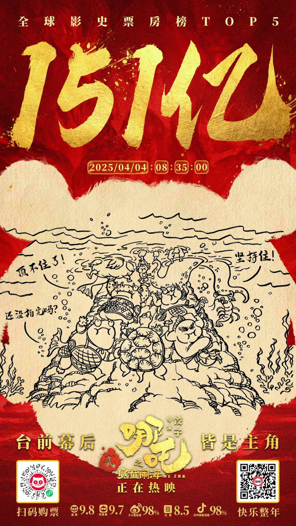 《哪吒2》在中国单一市场的票房已突破151亿元人民币