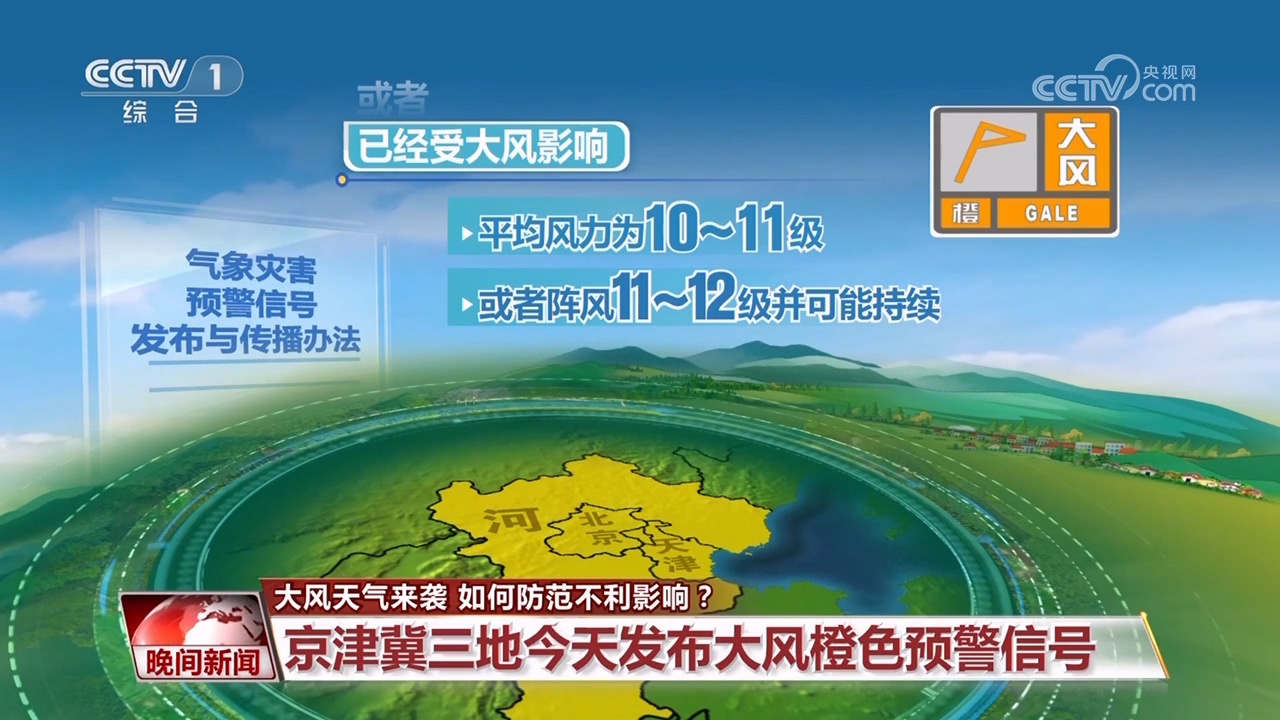 北京市、河北省气象部门4月10日发布大风橙色预警信号 ,天津市气象部门连续发布陆地大风和海上大风橙色预警信号。