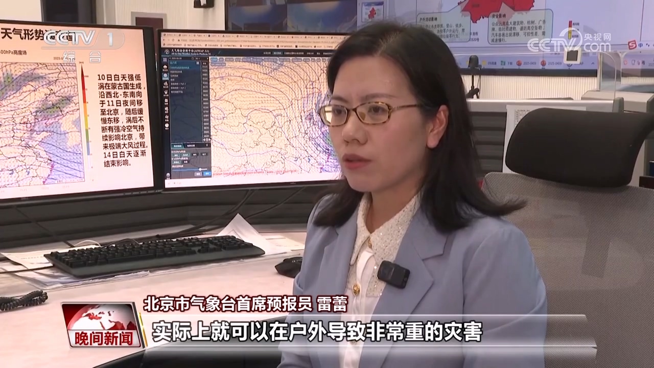北京市气象台首席预报员 雷蕾:10级的阵风实际上就可以在户外导致非常重的灾害,比如大树或者电线杆倒伏。北京平原地区是9级到11级阵风,而且持续时间比较长,影响范围比较广。