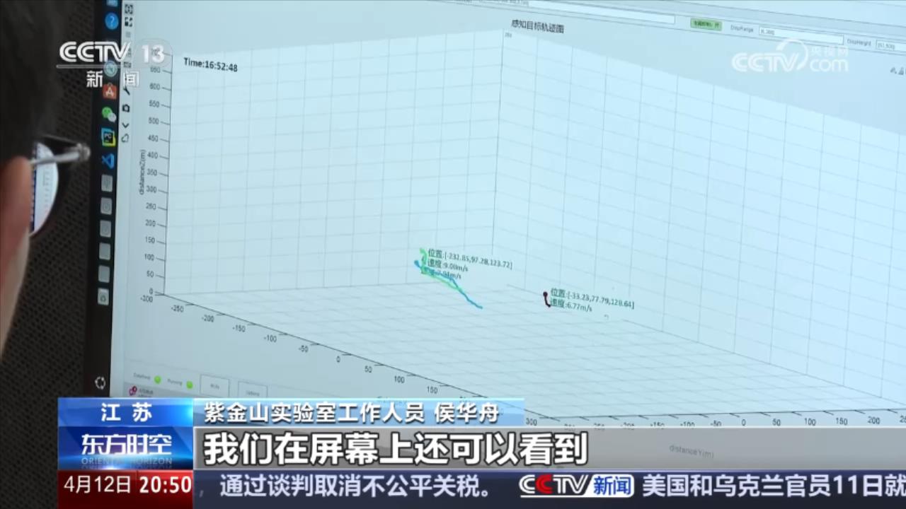 紫金山实验室工作人员 侯华舟:现在屏幕上显示的就是刚刚起飞的三架无人机的实时轨迹,我们在屏幕上还可以看到无人机的位置、速度、高度等状态信息。