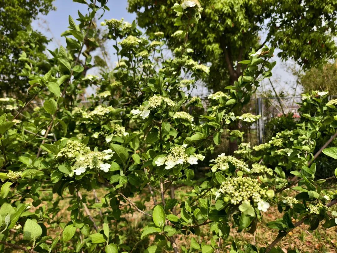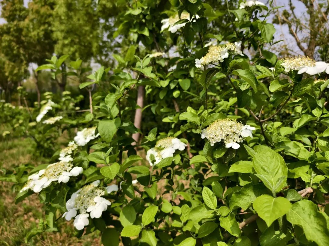 在宝山街头和公园,琼花可不多见,因此很多人看见了琼花也不认识。但在盘古路一侧的绿化带里,当下渐入佳境的琼花却给人们带来了些许惊喜。