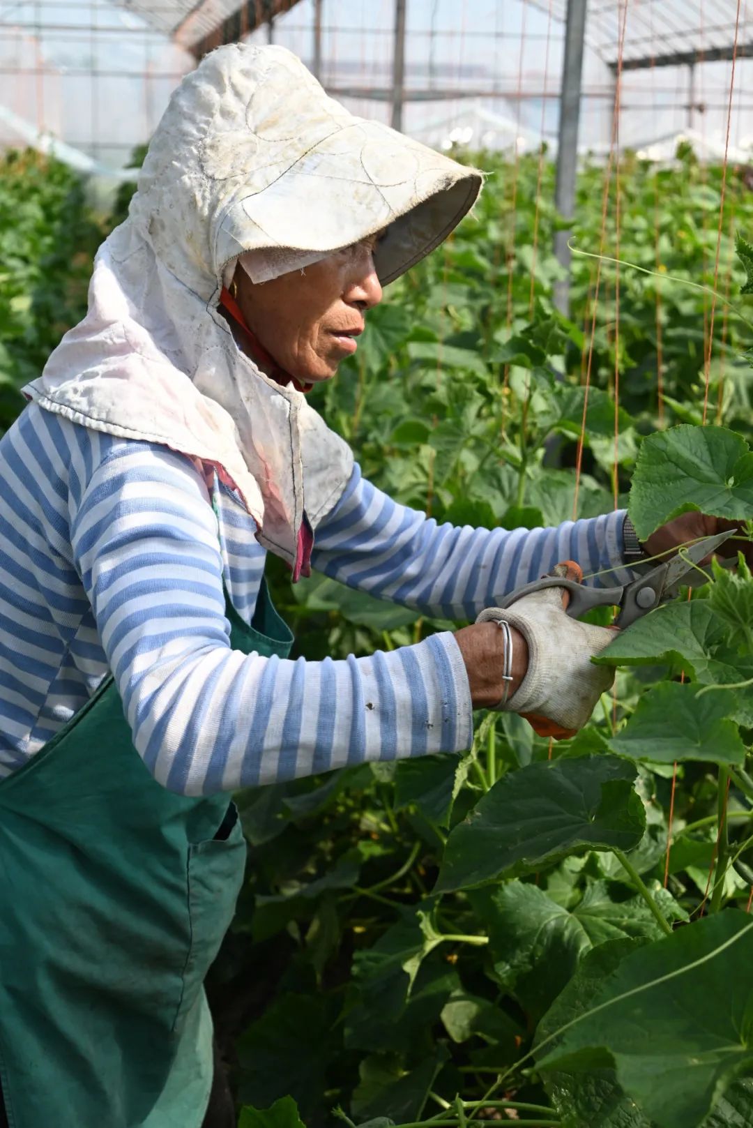 在秸秆菌肥滋养下,黄瓜展现出自然形态与独特禀赋,拒绝强行拉直,70%果实呈现10~25°优雅弧度;清甜本真,咀嚼后喉间回甘;生态印记:瓜蒂干花成为“自然成熟认证”。这些“不完美”但“会呼吸”的果实,恰是生态种植最诚实的勋章。