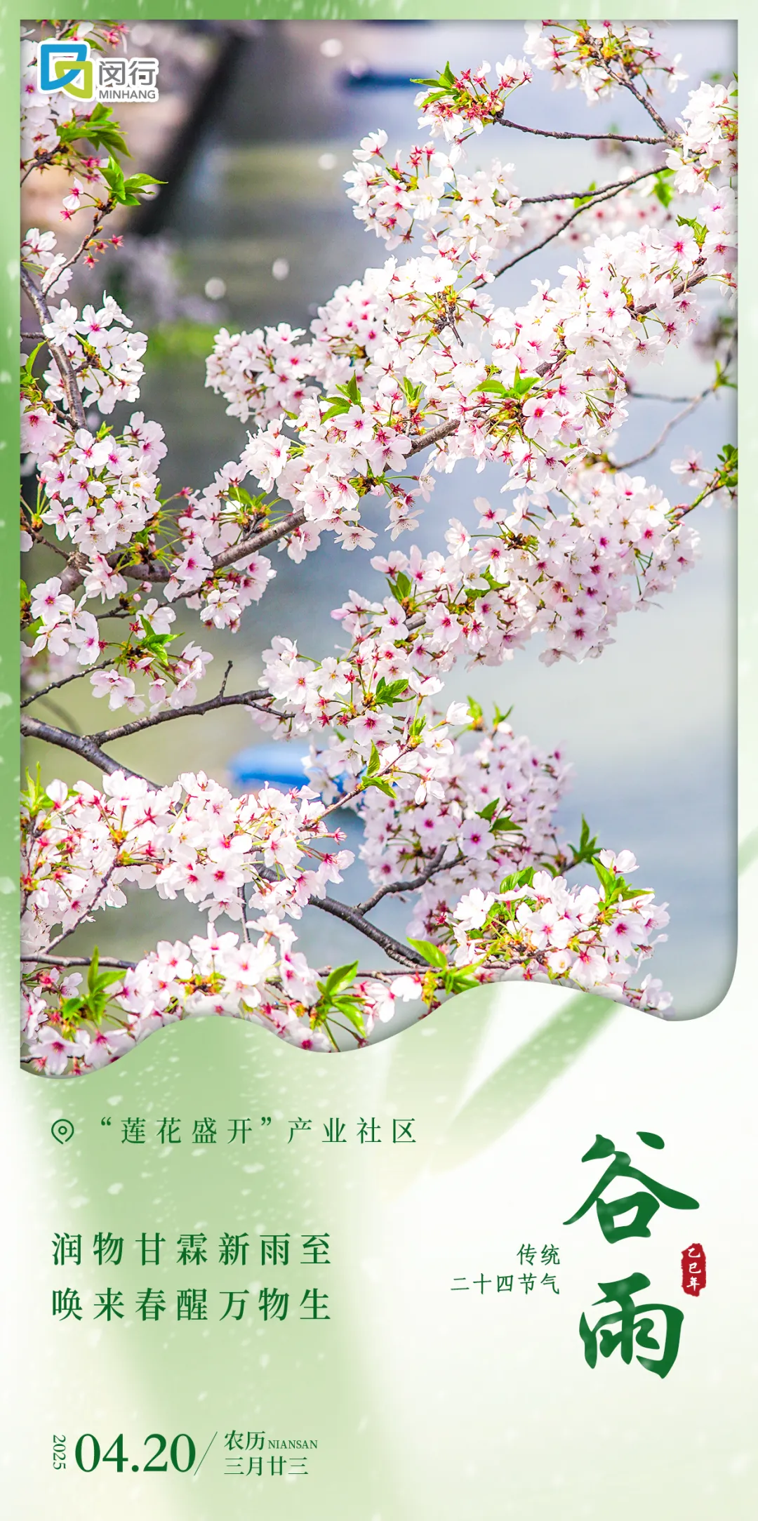 好雨知时节,当春乃发生。4月20日,是我国二十四节气中的第6个节气——谷雨。《月令七十二候集解》中记载:“三月中,自雨水后,土膏脉动,今又雨其谷于水也。雨读作去声,如雨我公田之雨。盖谷以此时播种,自上而下也。”谷雨节气标志着天气逐渐转暖、雨水明显增多,正是谷类作物播种与生长的重要时节,对农业生产具有重要意义。