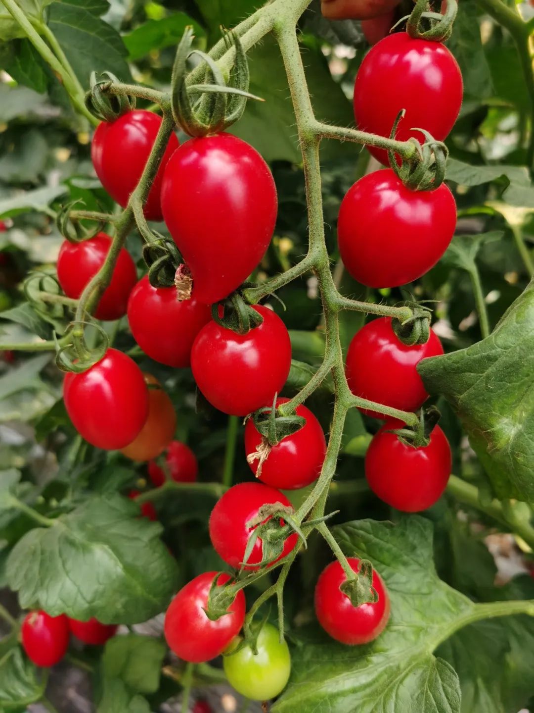 磊宏科技种植园内七彩小番茄蓬勃生长。葱郁的枝叶间,一颗颗形态均匀、色泽鲜亮的小番茄镶嵌其中。尝一口,果肉脆嫩、维C满满,酸甜爆汁充满整个口腔。