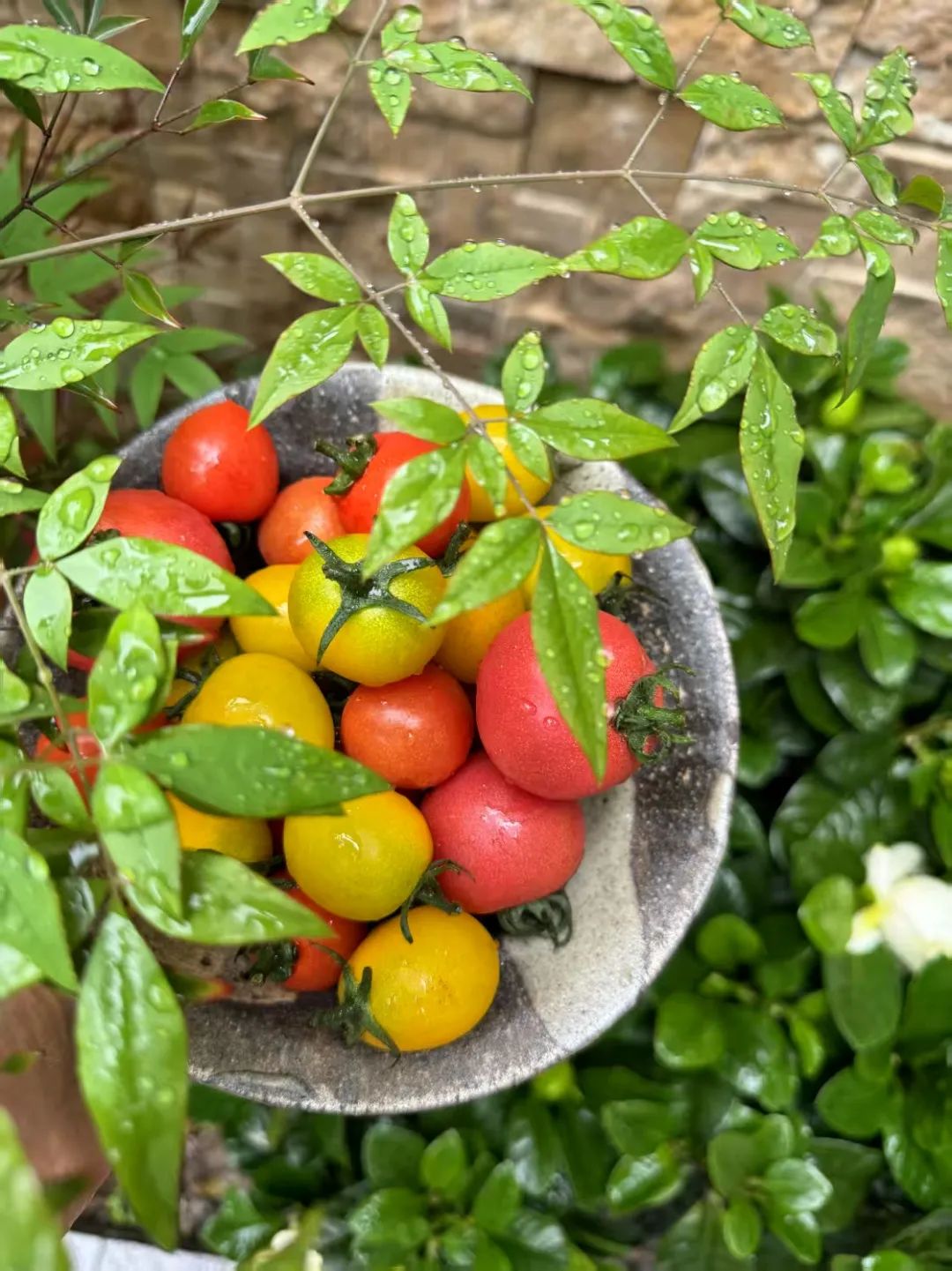 走进宝山湖的采摘大棚内,清新的果香扑鼻而来,一排排绿色的藤蔓间,各类五彩缤纷的番茄挂满枝头,甚是可爱诱人。今年,宝山湖种植了6亩番茄,主要以大番茄、小番茄和水果番茄为主,还特意引进了紫妹、浙樱粉等新品种,每一颗都汁水丰盈、酸甜可口~