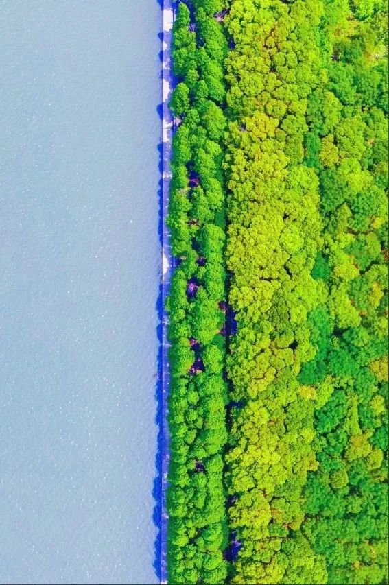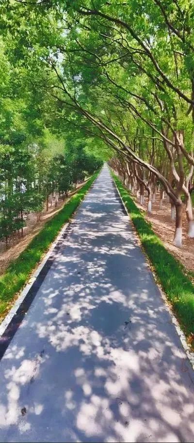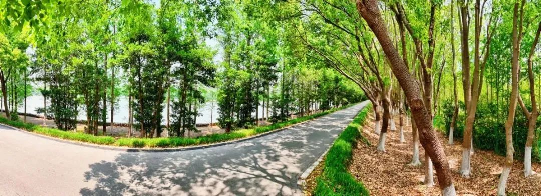 阳光透过枝叶洒下斑驳的影子,漫步或是骑着自行车在枝桠交错形成的绵延“生态绿廊”中享受慢时光,惬意又治愈。