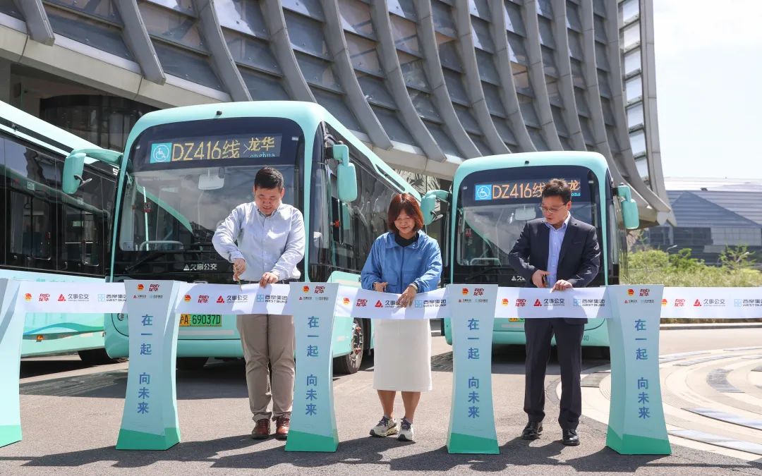 4月26日,“在一起向未来”徐汇区DZ416“龙华·西岸环线”公交发车仪式暨徐汇滨江青春经济发展推进会举行。滨江数字谷片区西岸智塔下,三辆青春标识的定制公交缓缓驶出人群簇拥的起点。随着DZ416“龙华·西岸环线”公交线路正式发车,徐汇青春经济版图上,新增一条连接街区与青年、文化与产业的活力动线。
