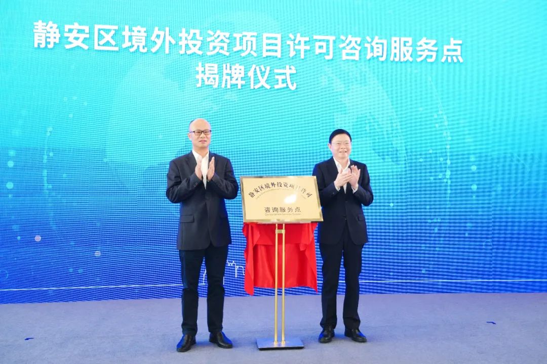 顾云豪和杨东升为静安区境外投资项目许可咨询服务点揭牌。该服务点将作为上海市中心城区第一个境外投资项目许可咨询服务点,将与市级部门紧密联动,为广大出海企业提供境外投资政策解读、流程指导等面对面服务。