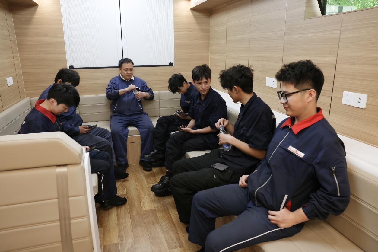设备试运行期间已吸引多批次员工体验,很多员工抱着好奇的心理走进车内纷纷表示“这个休息站的空调效果太棒了!夏天的高温和冬天的寒风一直是我们最大的困扰。但有了这个休息站,高功率空调一开,不管是炎热的夏天还是寒冷的冬天,里面都能保持舒适的温度。每次进入休息站,就像进入了一个恒温的小窝,瞬间就能缓解身体的不适,让我们能够安心休息。公司真是为我们考虑得太周到了!”