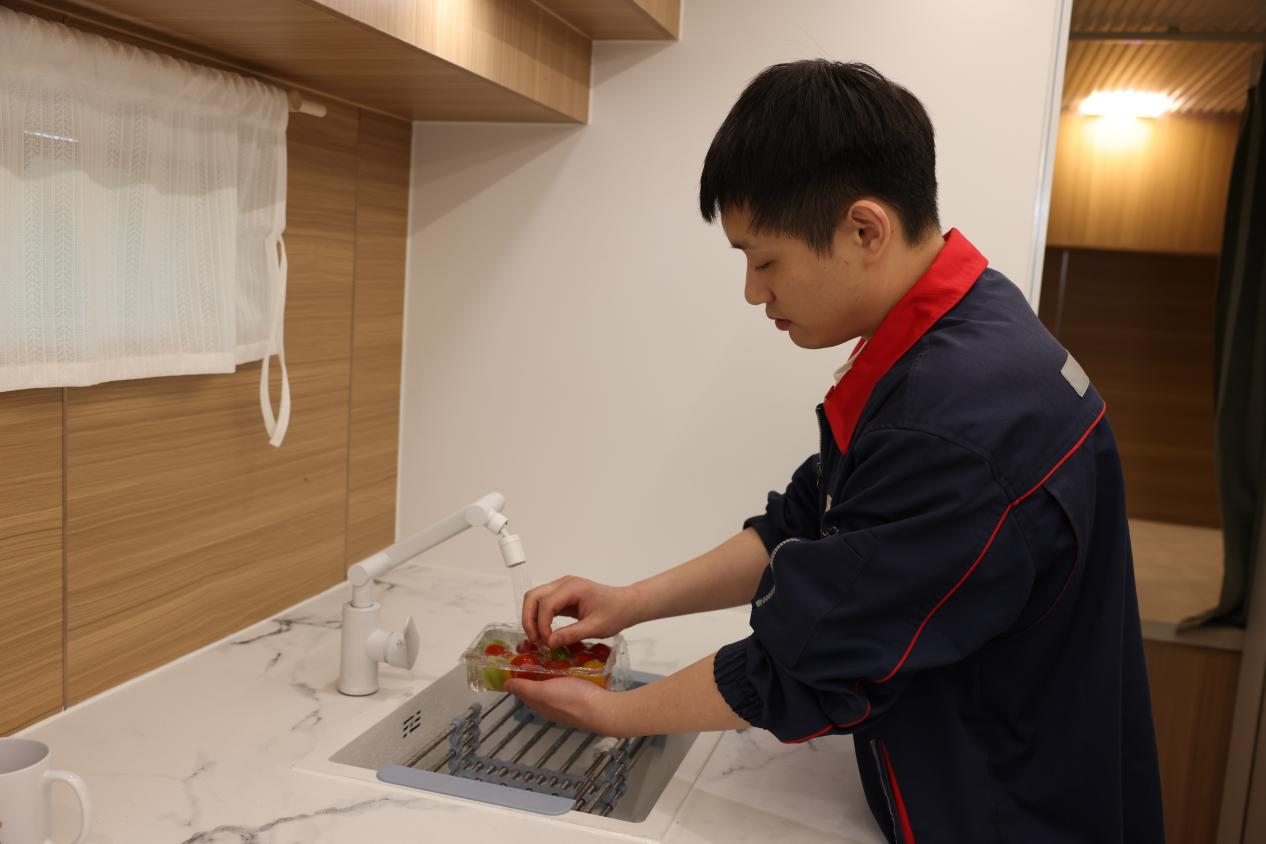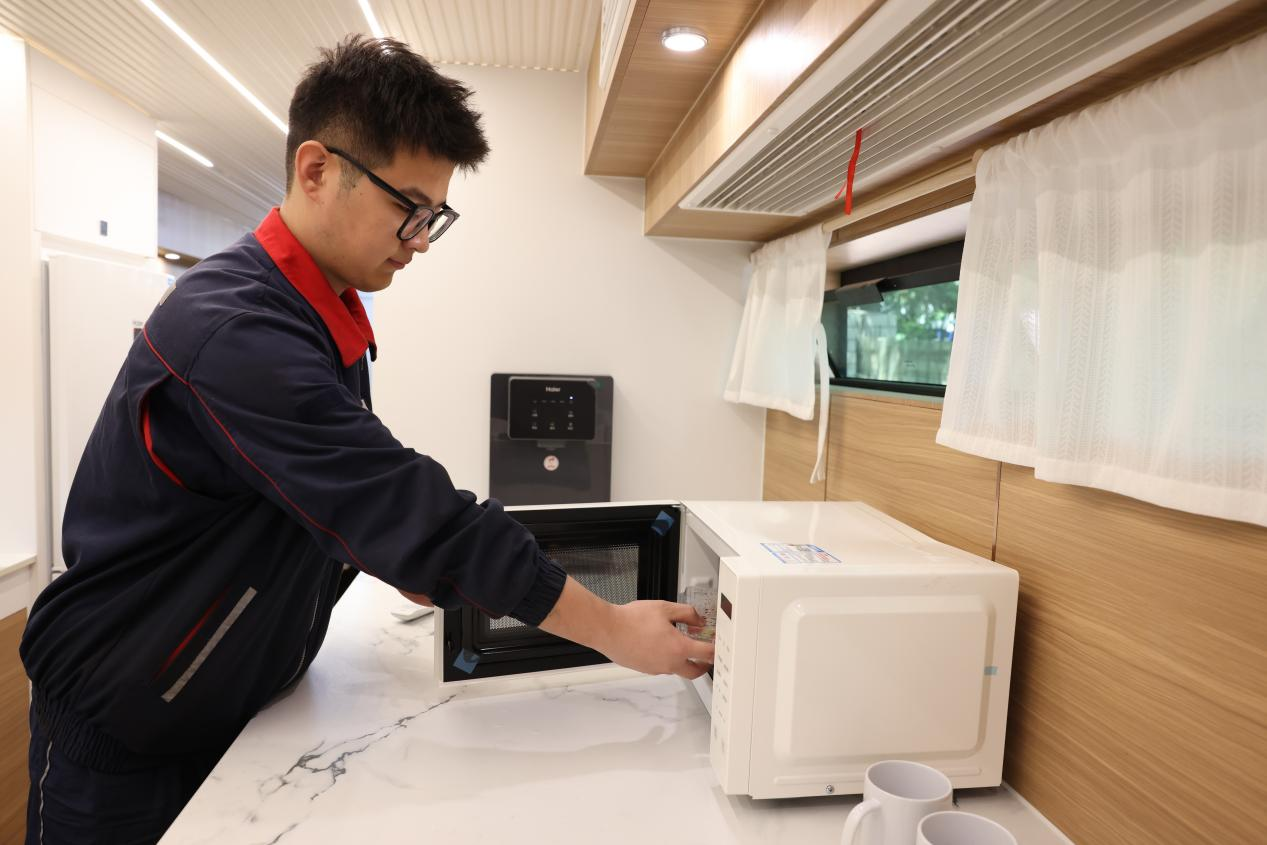 “厨房操作台和内置微波炉YYDS,是我们最喜欢的一个设施!有时因为紧急任务经常错过饭点,只能吃冷冰冰的盒饭,现在有了微波炉,可以随时加热饭菜,吃起来暖和多了。而且厨房操作台也很方便,我们可以在这里简单准备一些食物,感觉就像在自己家的厨房一样。让我们在工作之余也能享受美食,心里特别感激。”