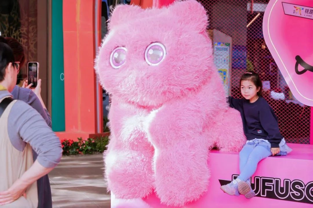 5月1日—6月30日,网红治愈系IPFUFUSOUL(时馥兽)特展在桃源π商业广场亮相。毛茸茸的粉色小怪兽FUFU化身“幸福大使”,与消费者互动打卡。商场主入口被打造为沉浸式治愈空间,吸引不少年轻人驻足。“女儿是FUFU的粉丝,专门带她来拍照。”带着孩子前来的顾客李女士表示。