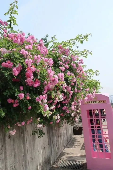 工业遗产的标签,叠加生态美学的符号,这一片蔷薇花为申城的美景写下生动注脚。据养护单位介绍,为了让市民游客拥有更扎实的体验感,在蔷薇花墙附近,特意设置了电话亭、书报亭、自行车等INS风道具,希望大家能拍照拍得开心。