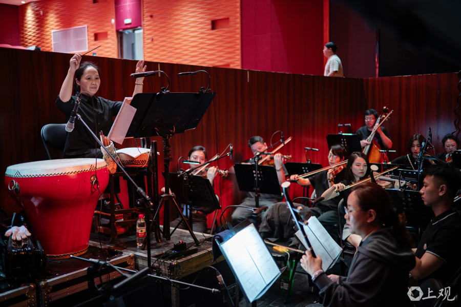沪剧院乐队在乐池中最先开始演前的合练。沪剧音乐的特殊性在于乐队不仅运用传统民族乐器,还融合了西洋管弦乐,使得作品的曲调颇为融合丰富,容易被当代观众接受。